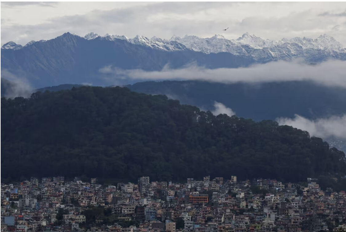 暴雨過後,尼泊爾加德滿都5日可見周邊山脈白雪皚皚。(路透社)