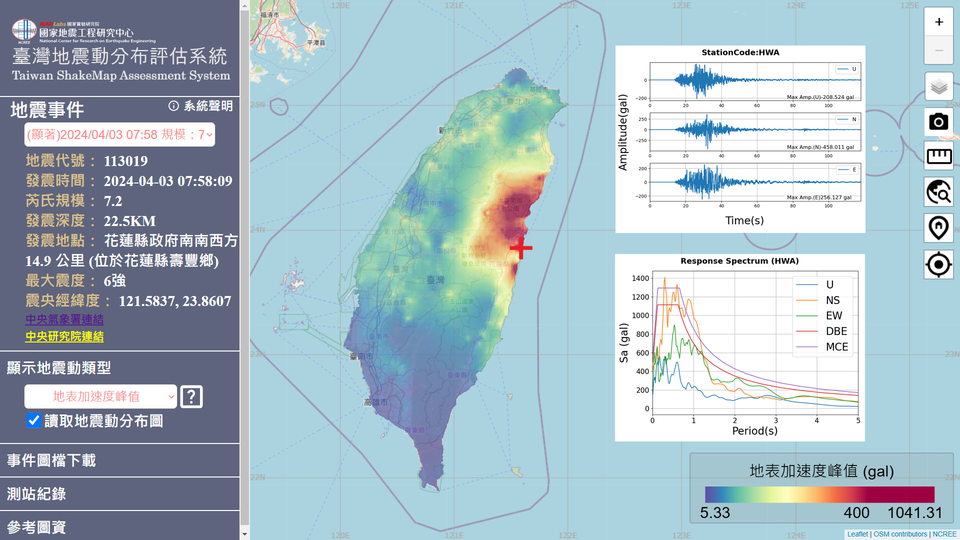 整合臺灣本土發展之先進地震動預估式、震源模型、場址參數及空間內插技術,開發全自動化高精度地震動推估技術。於地震後,結合中央氣象署與國研院國家地震工程中心實測地震數據,迅速評估全臺各地之地震動強度分佈,包含地表最大加速度、最大速度及譜加速度等主要地震動資訊,並提供各地實測加速度反應譜與現行耐震設計規範比對。建立GIS介面之網頁平台,提供視覺化查詢介面,供震後災情評估及救災應變參考。