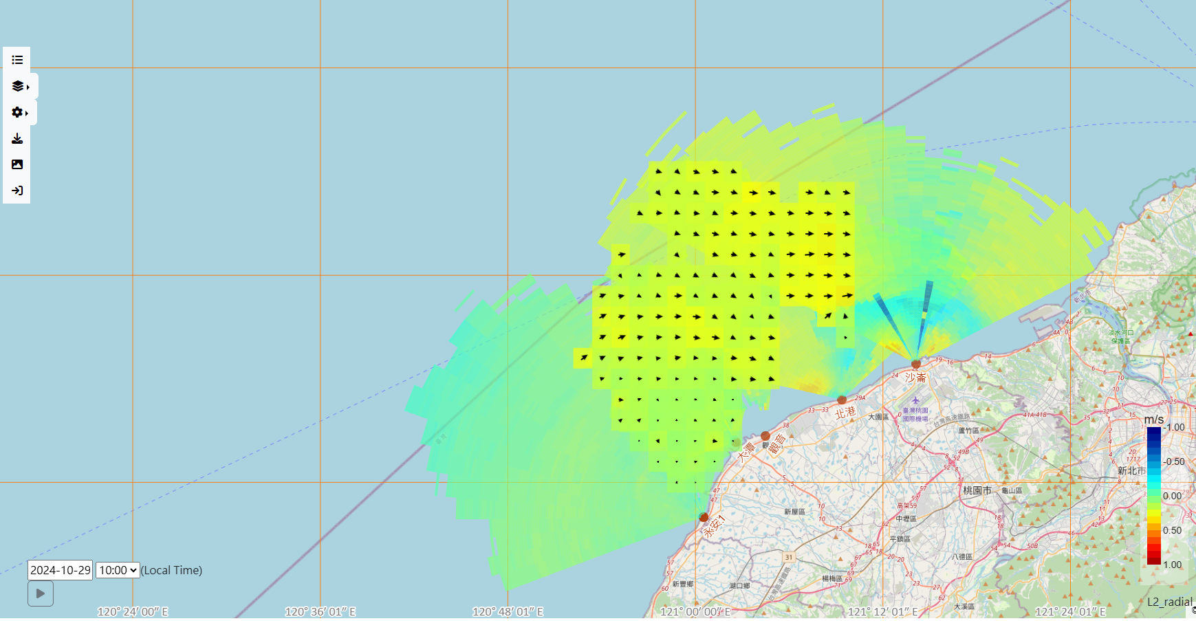 Center Weather Administration has set up 5 Oceanographic HF Radar System over Taoyuan coast to monitor waves and currents on the sea surface up to approximately 40 kilometers offshore in real time. The data can be used as a reference for coastal management department in response planning.
